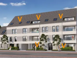 "Residentie DE BROSSERIE" Dit energiezuinige, moderne nieuwbouwproject omvat 14 lichtrijke & ruime doorloopappartementen met elk een eigen zonneterras/tuin en 1, 2 of 3 slaapkamers.De oppervlaktes v/d appartementen variëren tussen 70m² en 97m².Op het gelijkvloers bevindt zich ook een handelsruimte met maximale visibiliteit (= grote etalage).Achterliggend bevinden zich 20 parkeerplaatsen.Dit woonproject bevindt zich op een TOPLOCATIE te St-Andries, nl. op wandelafstand van alle faciliteiten (o.a. winkels, openbaar vervoer, invalswegen, scholen, Brugge centrum, Tilleghem bos, Koude Keuken...).Elk appartement geniet een uiterst praktische indeling, en is voorzien van o.a.: inkomhal, ruime leefruimte met eethoek en open keuken, terras, badkamer, 1, 2 of 3 slaapkamers en berging/wasplaats.De appartementen kunnen ingericht en afgewerkt worden naar uw smaak! Badkamer, keuken, vloeren... kunnen door de klant gekozen worden.Aan de achterzijde van het gebouw bevinden zich 20 staanplaatsen.Elk appartement dient een staanplaats aan te kopen.Tevens is er ook een fietsenstalling achteraan het gebouw.Daarnaast kan er ook een kelderberging aangekocht worden.De appartementen worden uiterst energiezuinig gebouwd (E-peil 30) en voorzien van o.a.: superisolerend dubbel glas, zonnepanelen, warmtepomp, vloerverwarming, ventilatiesysteem,...Er zijn ook 2 liften voorzien in het gebouw. Kortom: trendy en kwalitatieve appartementen, afgewerkt op uw maat, waar u zorgeloos kan genieten! Prijs appartement vanaf: 315.000 EUR (excl. kosten).Prijs handelsgelijkvloers: 200.000 EUR (excl. kosten)Prijs staanplaats: 20.000 EUR (excl. kosten)Prijs kelderberging: 5.000 EUR (excl. kosten)Verkoop onder BTW-stelsel.! Mogelijkheid tot 6% btw indien voldaan wordt aan de voorwaarden !Services
