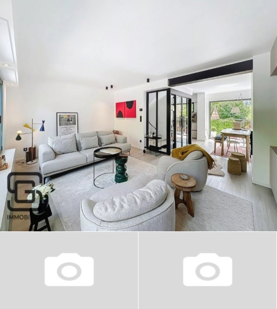 The house is centred around a living room offering a triptych view of the vegetation (3 windows overlooking the greenery) bathed in light, a functional and refined kitchen and an industrial glass roof showcasing the magnificent staircase. This property combines design, thermal and acoustic comfort in a sober and chic style reminiscent of the pages of the most beautiful interior design magazines.