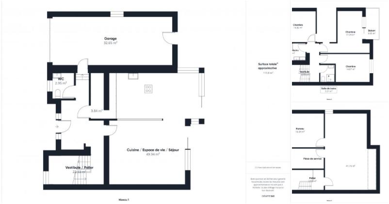 Trois chambres à coucher sont disponibles à l'étage, dont une équipée d'un dressing - deux salles de douche avec wc sont également présentes à cet étage, offrant commodité.