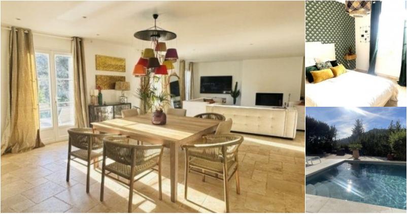 Gelegen in de nabijheid van wijngaarden en bossen . Op een paar km van het centrum-Grimaud via een verharde weg langs de wijngaarden. Deze woning gebouwd in 2006 werd onlangs met smaak gerenoveerd en kan onmiddelijk bewoond worden. Woonoppervlakte van 170 m2 met enkel grote grote vertrekken . De omheinde kavel meet 610 m2 , dus weinig onderhoud. Op het gelijkvloers vindt u een living met hoog plafond en open haard , een slaapkamer met eigen badkamer , dressing room en toilet.De grote half open ingerichte keuken geeft uit op de living.Op de eerste verdieping zijn er 3 ruime slaapkamers , een badkamer en een toilet.
