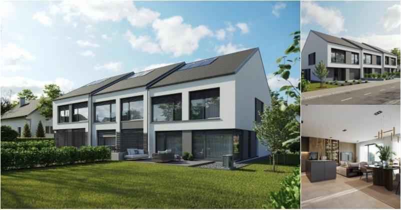 For sale: an exquisite residence located in the serene area of Redange, priced at €1,080,000. This semi-detached house, known as Lot 03, is part of a new construction project beginning in June 2024 with an expected completion date in July 2025. Nestled at 5, rue Tyres, a quiet cul-de-sac in the charming town of Redange-sur-Attert, this property offers a peaceful living environment with easy access to local amenities. The house boasts a passive AAA energy rating and sits on a lush 6.35-acre plot, ensuring low energy consumption and eco-friendly living. With a total surface area of approximately 213.51 m², of which 148.65 m² is habitable, the home features three bedrooms, two bathrooms, and expansive living spaces. The ground floor includes a 20.65 m² garage, a 13.60 m² entrance hall, a separate WC, and a generous 48.33 m² open-plan living room and kitchen that extends to a 24 m² terrace. The first floor offers a night hall, three comfortable bedrooms—including a master suite with a private shower room—a large family bathroom, and a utility/technical room. Additional highlights include ample natural light due to the west-facing orientation and large windows, underfloor heating throughout the living spaces, controlled mechanical ventilation, and an air-water heat pump supplemented by solar panels. The property also includes convenient features such as electric blinds, included painting, and a wide selection of high-quality finishes. Ideal for families who appreciate both comfort and sustainability, this residence offers versatile attic space that can be adapted to the future buyer's needs, potentially transforming into additional bedrooms. For inquiries or to schedule a viewing, please contact Shawna DE JONGHE at ( Tel +352) 621 565 264 .