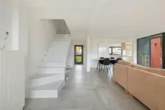 Make an offer from 449 000 euro Discover this beautifully renovated home in charming Roosdaal, perfect for those looking for a comfortable and modern living environment. With a living area of 155m² and situated on a plot of 360m², this property offers all the space and freedom your family needs. Inside the house you will find three spacious bedrooms, ideal for families or as a home office. The stylish bathroom is equipped with modern amenities and lets you enjoy a moment of relaxation. The open and bright living space connects the living room with the dining room and kitchen, creating a spacious feeling that invites you to socialize. The kitchen is equipped with high-quality appliances and offers a pleasant place for any cooking enthusiast. The large windows provide an abundance of natural light and offer beautiful views of the green surroundings. Outside, the garden offers opportunities for gardening, relaxing and playing. The home also features a practical 45m² double garage, so you don't have to worry about parking space or storage space. In addition to being a haven, this property is strategically located near local amenities and offers easy access to nearby cities. Don't miss this opportunity to start your living adventure in Roosdaal. Want to know more?