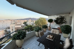 Superbly located in the prestigious area of Chalandri is this beautiful and fully renovated penthouse apartment. Featuring amazing panoramic views to Penteli and Ymittou mountains from the extra large veranda providing 12+ square meters of outdoor space. Conveniently located just 5 minutes off Kifissias Avenue, 10 minutes drive to Hygeia Hospital and Golden Hall luxury shopping mall, and just 4 kilometers to the highway for the airport. The penthouse occupies the entire top floor making for an extremely quiet living experience. A children’s playground is directly outside the front door. The owners have carefully designed the entire space using high quality luxury materials, with an exceptional eye for detail, rivaling even the newest properties on the market in space, excellence, and stunning views. All the plumbing, wiring, electrical outlets and switches, windows, floors, and doors have been replaced brand new. Hardwood floors are found throughout with high end marble featured in the kitchen and veranda/terrace. The large living and dining room feature built-in bookshelves, fireplace, and banquette seating for a dining table. The well lit designer kitchen features an abundance of storage space, prep areas, and a balcony perfect for a gas barbecue. Each bedroom is exceptionally equipped with floor to ceiling custom closets as well as a balcony. The master bedroom has a large en-suite bath designed for maximum space and eye appeal as a luxury hotel bath. A large storage room of 15 square meters is found in the basement. Private and secure gated parking is at street level. Heating is provided by an autonomous gas system while hot water is provided by solar water heating with a 160 liter tank and having a back up to the gas and electric system. For added pleasure there is wiring for a sound system and for your security there is wiring for an alarm system. Asking price is 525,000 Euros, interior is 120 square meters, and the property was built in 1995. Make an appointment to view it now! Want to know more?