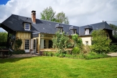 In the beautiful rural setting of Lieurey, you'll find this characteristic Normandy-style house. The spacious 1400m² grounds include a main house with ample work and storage space, and a gite. No new building is permitted in the immediate vicinity due to agricultural zoning. The plot is part of an impasse (hamlet) of four houses on a cul-de-sac. All houses are permanently occupied. The charming center of Lieurey is 1 kilometer away. Size: The plot measures 1430 m² (14.30 approx.). The main house, including the conservatory and studio, measures 155 m² The gîte (ground floor and first floor) measures 59 m² The Normande has the following layout: Ground floor Kitchen equipped with a boiler and induction hob, living room with a spacious original fireplace (to be restored to its original state) featuring a wood-burning stove, a beautiful, spacious, bright conservatory with sliding doors, and a study (originally an entrance hall) with a guest toilet. The hallway, with its walk-in closet, houses the bathroom (with a bathtub, toilet, washing machine connection, and sauna), and a spacious bedroom with French doors. The bathroom, bedroom, and hallway, including the walk-in closet, feature beautiful tombstones. The hallway provides access to the stairs to the first floor. The studio (storage and workshop) is located at the rear of the house, while the small garage and carport are situated at the side of the house. The upper floor The upper floor consists of two parts: An upper floor with two spacious bedrooms, one of which has a lovely balcony with a beautiful view over the meadows. There is also a bathroom with a shower, toilet, and pantry. The "maids' room" is accessible via the outside staircase on the kitchen side (located above the kitchen). Electrical installations have been modernized, along with on-site gas storage (certified by law), and a water supply. The beautiful, spacious outdoor area features several terraces, offering a variety of lovely sunny and/or shady spots, a vegetable garden, a large lawn with flower borders, various fruit trees, parking, playground equipment, wood storage, and a well-functioning mare (natural water overflow). The grounds are surrounded by hedges, perfect for nesting birds. It borders meadows with cows, which curiously peek over the fence at sunset. Gîte At the rear of the property is a comfortably furnished gîte with a private terrace, private facilities, parking, and a private access road behind the house. The ground floor is an open-plan space with a living room, kitchen, toilet, and shower. Upstairs, two spacious bedrooms are connected by a landing. Electricity and boiler are in good working order. Ideal for renting out or hosting guests. Want to know more?