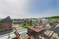 This bright penthouse, located on the top floor of a building in Pétange, offers an exquisite living experience with its south-west facing terrace. Spread over a generous area, the property includes a spacious entrance hall, a living room featuring custom-made wardrobes, and a fully equipped kitchen fitted with Siemens appliances and a granite worktop. The open-plan dining area of 57.7 square meters provides direct access to both the terrace and a balcony, enhancing the indoor-outdoor flow. The master bedroom comes with custom-made wardrobes and an en-suite bathroom, while the additional bedroom also features custom storage. A separate shower room with a WC completes the well-thought-out layout. The property boasts several modern comforts such as a lift, double-flow ventilation, and reversible air conditioning in the living room. It also features triple-glazed PVC windows, electric shutters, and a videophone system for added convenience and security. For the residents' use, there is a shared laundry room and an automatic parking door leading to the included garage box, which is equipped with an electric socket. A separate cellar space provides extra storage. Situated in a desirable residential area, this penthouse benefits from excellent connectivity. The 'Cité CFL' bus stop is right in front of the residence, and Pétange train station is approximately 600 meters away, offering easy access to Esch-sur-Alzette and Luxembourg City. Additionally, the E44 motorway is about 800 meters away, facilitating quick travel to major routes across Luxembourg. The neighborhood features several schools including crèches, elementary schools, and Lycée Mathias Adam, all conveniently located within Pétange. Want to know more?