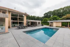 Rêvimmo Flanders presents to you an exceptional property offering approximately 700 m² of living space, nestled in the heart of a superb wooded plot of 47 ares in the prestigious Bois du Strihoux in Petit-Enghien. Upon entering, a bright hall leads to a spacious 60 m² living area, enhanced by a pivoting fireplace connecting the lounge and dining room. A custom-made wine cellar and a high-end kitchen will delight connoisseurs. Outside, an elegant pool house, a true extension of the residence, with bar, lounge and jacuzzi, opens onto large terraces leading to a fully automated 45 m² outdoor swimming pool. The night area includes a sumptuous master suite of ± 75 m² with views of the pool, dressing room and a luxurious bathroom equipped with an Italian shower, whirlpool bath and private WC, as well as two additional bedrooms upstairs, each with their own bathroom. A wellness area with gym, sauna and guest room with bathroom completes the property, while an independent apartment of ± 95 m² with separate entrance, featuring a spacious living room with fully equipped kitchen, a bedroom, bathroom, separate WC, laundry room and south-facing terrace, represents an additional asset offering multiple possibilities, whether to host a family, accommodate a relative or establish a professional practice. Built with great care and finished with high-quality materials, the property benefits from modern features such as home automation, underfloor heating via a condensing boiler, solar panels, a garage for two vehicles, several outdoor parking spaces, a laundry room, technical rooms and a beautifully landscaped garden. This rare property combines elegance, comfort and exclusive amenities. For more information, please contact us on ### or by e-mail at ### . Want to know more?