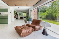 Rêvimmo Flanders invites you to discover a truly unique place. A rare villa nestled in the lush greenery of the Bois du Strihoux, where nature, space, and interior design evoke the gentle charm of a never-ending holiday. Here, nothing is ordinary. Renovated with passion and high standards, this home combines boldness with refinement. Every detail tells a story; every space invites you to slow down. A setting designed to savour everyday life like an endless summer. The 100 m² living area with open kitchen, bathed in light, flows gently onto the terrace, the heated swimming pool and the landscaped garden. A study – or an additional bedroom – completes this inviting ground floor. Upstairs, the 35 m² master suite offers privacy and tranquillity. Two bright bedrooms, a walk-in closet and a bathroom welcome the rest of the family in the same spirit of comfort and serenity. The 120 m² basement includes a double garage, laundry room, and two versatile rooms for wellness, remote working or hobbies – everyone finds their own retreat here. Planning permission has been granted for a 40 m² contemporary annex and a carport, offering even more possibilities. Smart home technology, security system, excellent energy performance (PEB B): modern comfort enhances the charm without disturbing the poetry of the place. This house is not just a property – it’s an enchanted escape, a home that vibrates with emotion, a place for those seeking something rare, elegant, and soulful. For more information, contact us at ### or by email at ### . Want to know more?