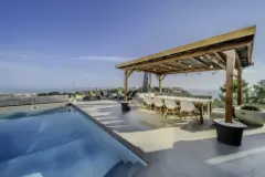 La Paloma de Manilva : Newly built prestigious contemporary villa with panoramic sea views. Built by the developer as a show house for his business this magnificent home includes best quality fixtures and fittings with many innovative design features.Situated a short distance from Sotogrande with its Marina, Golf Courses, Polo Club and beaches this wonderful home is the ideal base. The house stands in elevated position with 270º views of the sea and coastline.The accommodation is arranged on 3 floors with staircase and lift access to each level. At entrance level there is a full height entrance hallway with feature bridge access leading on to a main lounge with winter and summer sitting areas, living flame gas fire in contemporary glass chimney. Automatic blinds. Access to a large covered terrace with panoramic sea views. Dining area leading through to a large luxury fitted kitchen with central island unit and Silistone work tops. Built-in Neff appliances including an coven, combination microwave, coffee maker, hob, dishwasher and fridge freezer. Direct access to a breakfast and dining terrace. TV lounge with split level study area. Guest w.c. and home cinema.On the upper level the master bedroom has automatic blinds and access to a private open terrace with amazing sea views. Dressing room with wardrobe and storage space together with an en suite bathroom with large walk-in shower and slipper bath. 2nd bedroom with picture windows, fitted wardrobes and en suite bathroom with walk-in shower. Roof top solarium with bamboo wood decking. Built in bar, high quality stainless steel railings and Jacuzzi.On the lower level there is a hallway with w.c. off 2 bedrooms both with fitted wardrobes and en suite shower rooms. Machine room/utility room with washing machine and drier. Entertainment suite with built-in cocktail bar and barbecue, direct access to the garden. Snooker room and Gymnasium with access to the garden. Pool changing room with shower room/w.c. off giving direct access to the pool area.The garden includes and large virtual edge pool and sun terrace. There is also a self contained studio with bathroom.Double width garage with direct access to the house, 2 utility room with washing machine and storage space.Solar and gas fired central heating with under floor heating throughout the house. Double glazing, fitted persianas and automatic window blinds. Integrated domotics system. Want to know more?