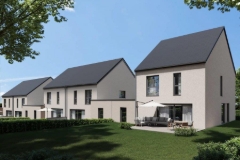 Wiesen-Piront offers you: Beautiful family house in future construction as an NZEB (Nearly Zero Energy Building), located on a plot of +/- 2,26 ares in the new residential development “In der Stolzheck” in Hesidorf (Steinsel). Heat pump The house features modern architecture and has a total surface area of 232 m²and a total habitable area of 157 m². The property is composed as follows: A garage for one car, an outdoor parking space, an entrance hall, a laundry room, and a technical room. An entrance hall, an open-plan kitchen and dining area, and a bright living room with access to the terrace through sliding doors. First floor: Three bedrooms, including a master suite with a private bathroom. Price: €1.188.731 – 3% VAT included (*) Price not subject to indexation (*) Subject to acceptance by the Registration Office. Want to know more?