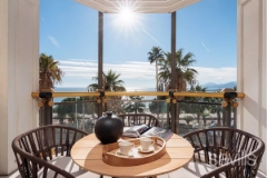 Ideally located in the heart of La Croisette, this fully renovated 3-room apartment opens onto a spacious terrace facing the sea. With a surface area of 95 m², it features a large living area with a lounge, dining room, and kitchen, all opening onto the terrace. Two large en-suite bedrooms, along with a guest toilet and cloakroom, complete this property. The apartment is equipped with exceptional features, including: -marble and solid wood flooring, -brass fittings in the bathrooms, -custom-made dressing rooms, -air conditioning, -double-glazed windows, -electric roller shutters, -home automation system. Residents of the building benefit from a 24/7 reception with security service, as well as exclusive access to a heated indoor pool. Option to acquire an underground parking space within the residence with direct access to the apartment. Want to know more?
