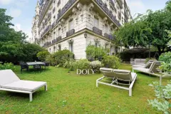 EXCLUSIVITY DOLY - Boulevard Maurice Barrès - Neuilly-s-Seine, On the garden level of a magnificent freestone building with caretaker, 6-room family apartment completely refurbished with high-end materials with an area of 169 M2 carrez with a corner garden of 378 M2. This property is composed of an entrance gallery leading to a magnificent corner living-dining room with double exposure (SOUTH and WEST), a fully equipped independent kitchen with patagonia worktop, a master suite with double dressing room and bathroom-WC, two bedrooms, a bathroom with shower and bathtub and a separate WC. On the lower level, a bedroom with direct access to the garden, And a "cellar" converted into a bathroom with WC, a fitness area, wine cellar and laundry room (with an additional surface area of 30 M2, not counted in the carrez). This apartment gives access, with independent entrance, to its private garden with an area of 378 M2 sunny all day thanks to its double exposure, and which you will enjoy developing according to your desires. No work is to be expected, DPE D. A modern renovation while keeping elements of the old. A non-rentable maid's room completes this property. DOLY FAVORITE - Extremely rare product. More photos on request. Want to know more?