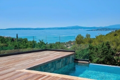 This contemporary villa in Roquebrune-sur-Argens offers a spacious and bright living environment with an emphasis on comfort and modern design. Built in 2022, the property features a living area of approximately 250 square meters, including a large reception space, a master suite with a dressing area and a full bathroom, as well as four additional bedrooms each equipped with their own shower rooms and toilets. The layout provides a functional and high-quality living space, ideal for families or those seeking a luxurious retreat. The villa is situated near the coast and local amenities, providing convenient access to beaches and shopping facilities. Outside, residents can enjoy expansive terraces overlooking the sea, perfect for outdoor relaxation. The property’s outdoor features include a heated saltwater infinity pool measuring 11 by 4 meters, complemented by a spa area. The outdoor spaces are enhanced by parking capacity that includes two garages—one capable of accommodating up to six vehicles—making it suitable for sports cars and larger vehicles. Designed with attention to detail, the villa’s construction emphasizes quality and durability. It benefits from two exterior garages, multiple parking spaces, and easy access for larger vehicles such as 4x4s. The location is peaceful, away from flood-prone areas, offering both privacy and tranquility. With its modern architecture and premium amenities, this property presents an attractive opportunity for buyers looking for a stylish coastal residence in the Roquebrune-sur-Argens area. Want to know more?