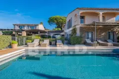 Located within a private and secure estate, this recently renovated, sumptuous villa perfectly embodies the Mediterranean art of living. Just a stone's throw from the beach, while preserving peace and privacy, it offers a unique lifestyle facing the Bay of Saint-Tropez. Set on landscaped grounds, this charming property features generous volumes bathed in natural light. It includes seven bedrooms, one of which is an independent suite – ideal for hosting family, friends, or staff. The spacious and elegant double living room opens onto large sunny terraces, perfect for relaxing or entertaining. Outside, a magnificent swimming pool invites you to unwind, surrounded by greenery and tranquility. Every detail of the renovation has been carefully considered to provide modern comfort while preserving the villa's authentic charm. Want to know more?