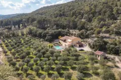 Bij één van de meest charmante stadjes in de Provence Verte ligt deze karakteristieke woning in een schilderachtige omgeving, omgeven door absolute rust en fraaie natuur. Het terrein van ruim 2,7 hectare strekt zich uit tussen heuvels en terrassen (restanques), beplant met 230 olijfbomen die een typisch mediterraan landschap creëren. Het huis past harmonieus in deze landelijke omgeving, badend in het licht en met uitzicht op de natuur. Eigen waterbron. De woning ligt middenop het eigen terrein. Indeling woonhuis met op de begane grond een entree, toilet, grote woonkamer van 62 m² met stenen open haard en houtkachel, keuken van 13 m² met toegang tot groot overdekt terras met prachtig uitzicht op de natuur. Hoofdslaapkamer van 26 m² met eigen badkamer van 12 m² en toilet; directe toegang tot het terras. Tweede slaapkamer van 20 m² met eigen badkamer. Twee andere vertrekken (18 en 12 m²), momenteel in gebruik als kantoor en wasruimte/buanderie, kunnen indien nodig eenvoudig worden omgebouwd tot extra slaapkamers. Waterput (21 meter) en aangesloten op glasvezel. Septic tank. Verwarming met warmtepomp. Energielabel C/A . Vrijstaande, te renoveren cabanon/schuur van 23 m², voorzien van water- en elektriciteitsaansluiting Grote dubbele garage van 30 m², een dubbele carport, een werkplaats op tuinniveau en een prachtig zwembad (beton, bouwjaar 1999) van 11 bij 5 meter. Een tijdloos woonhuis op betoverend plekje, ideaal voor liefhebbers van natuur, stilte en het Provençaalse licht Want to know more?
