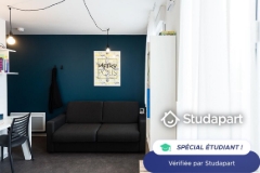 See on Studapart: ### Metropolis offers 96 apartments of type T1 and T2. Stylishly furnished, they all have an office area, a fully equipped kitchenette, a private bathroom and a bed with linen kit. Entirely designed to offer students optimal living and working conditions, it offers a complete range of services and advantages such as unlimited WIFI connection in each apartment, rental of household appliances and flat screen TVs, free access to the fitness zone as well as to relaxation and co-working areas, laundromat, private parking... All you have to do is put your bags down, welcome home! Want to know more?
