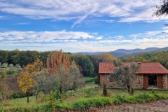 V468 Rustic farmhouse with large outdoor garden, woodland and olive grove for sale in a panoramic area in Sinalunga, surrounded by nature at the edge of the woods. The building of approximately 140 sqm was built in 2003 as an agricultural annexe, but is now intended as a civil dwelling. The house, which is arranged on two floors, is organised as follows. The structure is in an unfinished state on both the ground floor and the basement. The habitable floor is on the ground floor and consists of a kitchen-living room with fireplace, a bathroom and two bedrooms. The basement floor houses a storage room. There is the possibility of creating a living area and a service area by connecting the two floors via a staircase. The project has already received a positive prior opinion from the municipality according to current regulations. The property is completed by an agricultural land of about 2.5 hectares, divided into woodland, olive grove with about 100 trees and garden with fruit trees, from which there is a view over the whole Valdichiana. Within the property it is possible to build a swimming pool. The water supply for domestic use and irrigation of the garden is provided by a private well. The public electricity supply is already active. The property, reachable by a convenient road, can be used either for residential use or as a second home. The villa is located in a strategic point to reach the main tourist destinations in the area in a short time. Distances: food shops 4 km, Montepulciano 15 km, Cortona 33 km, Arezzo 35 km, Siena 32 km and Florence 95 km. Want to know more?
