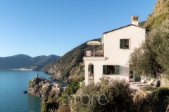 Arriving in the charming and picturesque village of Vernazza, located in the heart of the protected marine area of the Cinque Terre, one gets the feeling of being in one of the famous Italian films starring Sophia Loren and Marcello Mastroianni. After walking for about ten minutes along the Sentiero Azzurro heading south – the easiest, most famous, and frequented trail in the entire region – you reach a gate that opens into the heart of the characteristic Ligurian terraced land. This is the entrance to the villa: an exclusive property, a small gem situated in the protected natural park of the Cinque Terre, built on the top of a rock that juts out towards the sea. From here, one can enjoy a breathtaking 180-degree view of the stunning Ligurian Sea and the Doria Castle of Vernazza. The main villa welcomes you via the upper floor, accessed through an elegant, automated entrance door. Here, a bright open-plan living area unfolds — featuring a spacious living room and a seamlessly integrated kitchen with refined finishes. From this central space, two terraces open outward: a side terrace, perfect for al fresco dining in a sheltered setting, and a generous main terrace offering a spectacular view extending well beyond 180° across the Ligurian Sea and toward the iconic Doria Castle of Vernazza — a natural invitation to pause and savour the surroundings. A distinctive architectural feature is the handcrafted wooden staircase with alternating treads, which connects the two levels with both functional finesse and aesthetic harmony. The lower floor is dedicated to the private quarters, comprising an elegantly appointed master bedroom, a second bedroom, and a tastefully designed bathroom finished with carefully selected materials and timeless style. Just a few steps from the villa, the property features an exclusive dépendance that offers privacy and comfort. The dépendance has an independent entrance, a bedroom, a stone-carved sink, and a panoramic shower, distinguished by a unique glass wall that opens to the outside and can also be shaded, allowing guests to immerse themselves in the beauty of the surrounding sea and hills, offering an unparalleled stay experience. The villa, curated in every detail, is an exclusive retreat in the heart of Cinque Terre natural park, where you can experience moments of relaxation and privacy. Characterized by a style that perfectly balances modern and classic elements, it features high-quality custom finishes and carefully chosen details that make this property unique. An initial design for an infinity pool with a 180° sea view can be planned, allowing you to fully enjoy the stunning view. In addition to the connection for potable water, a 2,000-liter reserve tank and a biological sewage system, which also serves as irrigation, ensure total self-sufficiency. Every installation and finish is of the highest quality, minimizing maintenance costs. Want to know more?