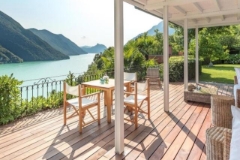 Aan de Italiaanse kant van het Lugano meer, op slechts 12 km vanaf de stad Lugano (CH), ligt in een oase van rust deze prachtige villa met panoramisch uitzicht op het meer. Het hoofdgebouw heeft een oppervlakte van 182 vierkante meter, geheel op de begane grond, en bestaat uit een grote woonkamer met een open keuken die direct uitkomt op het terras met uitzicht op het meer en de binnen veranda, twee slaapkamers, een studeerkamer, twee badkamers, een toilet, een wasruimte en een berging. Vanaf de buitenplaats leiden een paar traptreden naar de dependance van 70 m2 dat verdeeld is over twee niveaus. Het bestaat uit een eet/woonkamer met keuken, twee kamers , twee badkamers en een mooi terras. De woning wordt omringd door een parkachtige groene tuin met prachtige seculaire bomen, weelderige bloemen, een zwembad en een veranda met zithoek. Er is een dubbele garage en verschillende onoverdekte parkeerplaatsen op eigen terrein. Dankzij de gunstige ligging geniet men hier de hele dag van de zon. Er bestaat de mogelijkheid nog extra bouwgrond naast het eigendom te kopen met een bouwvolume voor twee grote vrijstaande villa's, twee halfvrijstaande huizen of vier schakel- appartementen. De huidige gebruiksmogelijkheid biedt een woonoppervlakte van ca. 656 m². Faciliteiten: Inbraakalarm, Open haard, Kluis, Elektrische poort, Dubbele beglazing, Satellietsysteem, Wasserette, Zwembad, Gepantserde deur, Internetaansluiting , Berging, Elektrische rolluiken, Buitentafels, Veranda, Video-intercom Want to know more?
