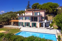 Surrounded by around 60 olive trees, the property invites you to stroll, relax and enjoy - whether by the pool, in the relaxation areas or outdoors. The property also offers a large garage and ample parking.The three-storey villa is perfectly appointed inside with marble in the living areas and parquet in the sleeping areas. Each room has been designed so that indoor and outdoor areas flow seamlessly into one another - always accompanied by the fascinating panorama of the sea.The first floor is connected to the pool area, the sun terrace and the pool house. A spacious open-plan living area with a high-quality designer kitchen, dining area and lounge zone opens up here. A bathroom and a storage room complete this level.An elegant marble staircase connects all floors. The middle floor features a spacious living room with sofa corner and breakfast area, two bedrooms - one of which has its own bathroom - and an additional bathroom. A large side terrace extends the living space to the outside.On the upper floor is the spacious master bedroom with its own bathroom and access to a huge panoramic terrace with breathtaking sea views."Villa Rosa" - elegance, panoramic views and Mediterranean lifestyle. The panoramic sea view is one of its special features - the perfect oasis of tranquillity.The hill behind Imperia - a place of peace, beauty and exclusivity. Embedded in typical Ligurian olive groves, a world of special places is revealed here. This is where Villa Rosa is located, perfectly finished and equipped with the highest living comfort, surrounded by a beautiful garden with a spectacular pool and unique panoramic views.LIGURIA, on the Italian Riviera, boasts breathtaking coastal landscapes, a high quality of life, first-class restaurants, delightful cycling routes and excellent shopping opportunities. The Ligurian Sea offers relaxation and water sports, while the regional cuisine, from fresh fish to pesto genovese, promises culinary delights. Cyclists will find challenging routes along the coast and mountain passes. Charming villages and local markets invite you to explore, and a variety of shopping opportunities offer souvenirs and fashion. Liguria combines the best of Italy in one welcoming region. Want to know more?