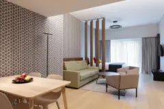 Feel at home in this one-bedroom apartment in Luxembourg, offering a functional and welcoming environment perfect for professionals seeking a true "Home away from Home." The apartment features a separate living room, bedroom, and a bathroom with a walk-in shower, situated on the ground floor for easy access. It's ideal for long stays, given its full range of amenities including a queen-size bed, a double sofa bed in the living room, and a dining table for four. The apartment is designed to provide a convivial and easy living ambiance, perfect for those looking for a long-term stay. It includes a fully equipped kitchen with a stovetop, refrigerator, microwave, dishwasher, and kitchenware. Additional comforts include a professional Technogym fitness room, game room, and convenient in-unit laundry facilities. Guests can enjoy several paid add-ons such as private parking, fitness area access, and laundry services. These services are designed to provide convenience and enhance your stay. Located strategically about 400 meters south of Av. John F. Kennedy in Kirchberg, Luxembourg, this apartment is just a 5-minute walk from the Tram Stop Universitéit. It's steps away from the International Financial Centre and the Headquarters of the European Institutions, making it ideal for professionals. The historical centre, "La Ville-Haute," and Findel Airport are both just a 5-minute drive away, offering easy access to both work and leisure destinations. The apartment is soundproofed with acoustic doors and large triple-glazed windows to ensure a quiet and private living space. Weekly cleaning services are included to maintain the pristine condition of your home. The apartment offers a conducive environment for remote work with a stable Wi-Fi connection and a comfortable workspace. This setup ensures productivity for those who need to manage work commitments from home. Want to know more?