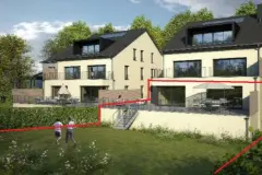 New apartment (lot 01B) of approximately 90.69 m² of living space, with a terrace of 56.79 m² and a private garden of 706.14 m², located on the ground floor of building 67B in the new residence "LAROCHETTE", consisting of 6 apartments spread over 2 blocks of 3 levels. Situated in the charming village of Larochette, this modern residence offers a peaceful living environment, close to nature and all amenities. Property composition: Entrance hall Separate WC Equipped kitchen open to a large living room (? 33.16 m²) with access to the terrace and garden 3 bedrooms (? 10.02 m² ? 10.15 m² ? 12.74 m²) Bathroom with WC (? 6.88 m²) Private cellar Location in the common laundry room Optional: Outdoor parking starting from €12,000 Indoor parking starting from €27,000 Displayed sale price includes 3% VAT. (Photos are non-contractual) ?? Contact: ### ?? Tel.: 621323127 Want to know more?