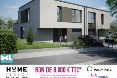 LOT 11 Semi-detached house by the garage on a plot of 6.61 ares with a living area of +/- 162m2 comprising: First floor: - 3-car garage - entrance hall - large living room - dining room with kitchen leading to terrace and garden - dressing room - private WC - cellar - utility room - laundry room 1st floor: - night hall - 4 bedrooms including 1 master suite with WC and shower room - 1 separate WC - 1 bathroom with shower and bathtub Withdrawal: Possibility of building an additional floor "Advertised selling price with 3% VAT, subject to approval by the authorities. For further information, please contact our CREAHAUS SA sales department: ### or by e-mail: ### Want to know more?