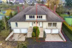 For sale: A charming residence located in the peaceful and residential area of Mondercange, at the end of a cul-de-sac, providing direct proximity to shops, public transport, and schools. This exclusive property offered by Cimm Immobilier Luxembourg is situated on a generous plot of 9.15 ares and boasts three open sides. It features five bedrooms and two offices suitable for professional use, a terrace, and a two-car garage. The ground floor comprises an entrance hall, a living room, a kitchen, a veranda, a terrace, two bedrooms, and a bathroom. On the first floor, you will find a night hall leading to three additional bedrooms and another bathroom. The basement includes a two-car garage, two offices with individual entrances, a waiting room, and storage cellars. Technical amenities for this property include wooden frame double glazing with electric shutters and central gas heating. For further information or to schedule a visit, please contact Cimm Immobilier Luxembourg at: (+352)26 95 40 03. Want to know more?