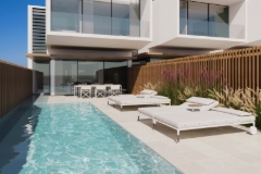 These modern luxury and high quality townhouses "Oliveira" with 2 bedrooms, 2 bathrooms and a private pool are in a new Urbanization at just 5 minutes from Albufeira and the beach. The first fase of this project was recently finished, after which fase 2 and 3 will follow. Designed by the renowned architect Vasco Vieira, these villas offer you all the luxury and space you might require on a peaceful location within easy reach of amenities. The ground floor of the property consist of an open space lounge with fully equipped kitchen. There is direct access into the lounge from your 2 car garage which is located in the basement. Further on this level you will find a guest toilet, front terrace and spacious rear terrace with private pool and BBQ area. The stairs from the basement up to the lounge continue up to the first level of the property. On the first level of the townhouse is the master-bedroom with en-suite bathroom with bath. Completing this level is the second bedroom, with adjacent a bathroom with shower. Further stairs lead you up to your private roof terrace to enjoy the view over the surrounding area. All properties with air-conditioning, underfloor heating throughout the property, pre-installation for a Smart-Home system and floor to ceiling sliding doors. Set in a higher area just outside Albufeira this is an unique development with exceptional design, luxury for the properties as with the services. Boasting exquisite finishes and the highest standards of energy efficiency, the properties are complemented by 5-star facilities and services, a luxurious Clubhouse, concierge, restaurant, spa and gym. These high-end properties are in the perfect location, close to everything and far away enough to offer quiet and peaceful surroundings. Contact us fast if you do not want to miss out on this opportunity. Want to know more?