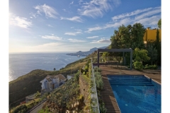 Boasting unobstructed Ocean views from all levels, this beautifully renovated contemporary 3-bedroom villa, tastefully furnished and ready to use, includes solid wooden floors, lift, deep balconies, high ceilings throughout, 130m2 living room, heated 10m pool and extensive sundeck and garden with 180 degree views. Enjoying a very convenient location, at 200m above sea level, in Garajau, close to the motorway exit/entrance, Funchal 10 mins, airport 10 mins. Garajau features shops, restaurants, pharmacy, with easy walks to Cristo Rei with cable car to beach, and Caniço de Baixo with tourist infrastructure. This is a quiet residential neighbourhood of 130 plots, excellent mix of Portuguese/international residents, and some AL (AirBNB) properties The private villa was totally refurbished in 2021 and is in perfect condition. The sale includes the high-quality German, Dutch and Danish furniture. Entry level The property is entered through automatic gates into a double garage, with storage space and south facing windows for ventilation and light, and interior access to the entrance hall. The pedestrian entrance presents well with manicured flowerbeds, and a neat few steps to the main entrance door. This house is full of light, with windows to all circulation spaces. A CRONA lift serves the three floors. The main staircase features a double-storey window offering clear ocean views, whilst the 3M foil blocks 90% of the heat and UV rays, protecting the wooden floors and keeping the space cool. The beautiful solid wooden floors throughout the house have been recently fully sanded down and revarnished. The first floor features 2 ensuite bedrooms and a master suite. All have 300cm high suspended ceilings, 250cm sliding doors to the terrace, ceiling to floor fitted curtains with pelmet, fitted wardrobes, fully fitted concealed AC with heating/cooling/dehumidifying options, electric exterior blinds, and newly appointed bathrooms with Villeroy and Boch sanitaryware, all with natural light. All three bedrooms access the deep balcony clad in natural bamboo decking and offering stunning views over the ocean. The master suite also offers a dressing room, generous ensuite bathroom, and a large additional storage room. The ground floor features a 130m2 open-plan living/dining/office area. The stone-clad columns create a cosy atmosphere and break up the large room into flexible individually designed spaces. The friendly family kitchen can be closed from the living area by sliding doors, or left totally open plan. A convenient pantry complements the fully fitted kitchen with granite worktops and mainly Siemens appliances, and a guest WC completes the accommodation. This floor also boasts 300cm suspended ceilings, 250cm terrace doors, fitted curtains to all windows, exterior electrical blinds, as well as centrally operated concealed AC, and Wi-Fi and radio secured throughout. The extensive exterior terrace features a BBQ area, a heated and covered 10m pool with salt water treatment and to the south-west a gazebo with lights and adjustable roof and sides allowing you to enjoy the ocean & sunset views over Funchal in all weather conditions, creating shade or acting as a windbreak. The views from this terrace will never tire, with the glass balustrades optimizing on the feeling of expanse and freedom the property offers. Also a fantastic spot for watching dolphins and whales. The small garden to the west is well-kept and perfectly complements the contemporary structure. The two large storage rooms to the east and west of the house provide multipurpose spaces for a laundry, games room, or storage. Unobstructed views from all rooms – front line Fully renovated 2021 Double garage, lots of storage Lift over 3 floors 3 generous ensuite bedrooms Concealed AC, efficient heat pump for hot water. Flexible open-plan living area Fully fitted kitchen and pantry 14 photovoltaic panels 440W Energy efficiency rating: D Sold furnished. Want to know more?