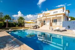 Make your dreams come true with this amazing 5 bedroom villa! Located near Praia da Marinha, this 13,710 sqm large plot boasts of incredible leisure areas with a swimming pool, football pitch, fruit trees and various outdoor terraces and an outdoor dining area with BBQ and pizza oven. On the ground floor the property has a living room, dining room, fully fitted kitchen, 3 bedrooms, 2 bathrooms and a pantry. All bedrooms have air conditioning and fitted wardrobes as well as access to a terrace. From the living you enter the terrace, pool area, and outside dining area with BBQ and pizza oven. On the first floor there are 2 bedrooms and 2 bathrooms. Both have access to a terrace. Basement area has been converted into three apartements. All with a kitchen, living room, and 1 or 2 bedrooms. Perfect for guests. The pool area has a large terrace around. Ideal for sunbathing. A pool shower, a green sunbathing area and a covered terrace alongside the pool make this the ideal lounge area either in the sun or the shadow. Children (and adults) can play football on the football pitch. The garden and pool have lighting which makes the evening sceneray at this villa truly stunning. Even thought the property has a large plot of land, the land is low maintenance. Around the house the garden has been landscaped with beautiful trees. Multiple fruit trees such as orange trees, mandarines and pommegrate. As well as cork trees and olive trees. Vale del Rei is one of the most desired valleys in the Algarve. Close to all amenities to live in comfort. With Carvoeiroa, Lagoa, and Portimão close by and within 5 minutes drive you are at the Praia da Marinha beach; one of the most well-know beaches in Portugal. Both Lagoa and Carvoeiro offer a wide range of supermarkets, bars, restaurants, shops, golf courses and also shops such as dentists, hairdressers etc. This villa is perfect as a holiday home, which can perfectly be combined with rentals if you wish. The current owners use one of the apartments for themselves and the main house with 5 bedrooms is rented out throughout the year; this provides a great rental return each year. Plus, with a private borehole and solar panels for warm water, you'll never have to worry about expensive costs. Live near Carvoeiro in luxury and make this your perfect getaway! Want to know more?