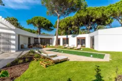 Engel & Völkers Cascais Group proudly presents the Onyria Quinta da Marinha Residences a signature development perfectly nestled between the Atlantic Ocean and the renowned golf course of Quinta da Marinha, one of Portugal's most coveted postcodes. This exclusive enclave comprises only eighteen private villas, harmoniously integrated into the surrounding pine forest. Each residence occupies its own plot, ensuring total privacy, with no communal areas, yet benefiting from 24-hour on-site security. The architectural concept reflects a deep respect for nature earthy tones of green, brown, and white blend seamlessly with the natural landscape. Every villa is constructed to the highest standards, combining modern design with warm, organic materials such as wood panelling, wooden floors, and hand-crafted tiles. Located within walking distance of both the ocean (2 minutes) and the vibrant centre of Cascais (5-10 minutes), this address offers an unrivalled lifestyle of coastal tranquillity and urban sophistication. With no new plots available in the area, ownership here is both a lifestyle choice and a secure long-term investment. Each villa within this touristic development is delivered fully furnished and equipped from state-of-the-art appliances to the finest tableware ready for immediate occupancy. The Villa Contemporary Single-Level Elegance Set on a plot of 983 m², this refined V3 + 1 villa offers a total built area of 220 m², designed entirely on one level for seamless comfort and accessibility. Upon entering through the 12 m² foyer, a bright, open-plan space unfolds the 50 m² living, dining, and kitchen area framed by floor-to-ceiling windows that open directly onto the landscaped garden and private swimming pool. The kitchen (18 m²) is fully equipped with AEG appliances and adjoins a practical laundry room (4 m²). To the left wing, a 16 m² en-suite bedroom with 5 m² bathroom provides a serene guest retreat, accompanied by a stylish powder room for visitors.To the right, two additional suites: Bedroom 2: 15 m² + 3.5 m² bathroom, furnished with twin beds. Master Suite: 28 m² bedroom with an 8 m² walk-in closet and 8 m² bathroom featuring both a walk-in shower and freestanding bathtub. An additional study room offers flexibility for use as an office or potential fourth bedroom. The villa extends outdoors to a covered terrace (20 m²), elegantly furnished and ideal for dining, barbecues, or relaxation by the pool. The private garden is beautifully landscaped and features a swimming pool with pre-installation for heating and a tailor-made cover for winter months. Additional highlights include: Ducted air conditioning throughout. Central hydraulic heating system. Private exterior parking for up to two cars with electric-vehicle charging point. All areas have been meticulously planned to create a harmonious connection between interior and exterior living, offering an effortless indoor-outdoor flow that captures the essence of the Cascais lifestyle. Completion and Delivery Construction of Onyria Quinta da Marinha Residences is now fully completed, with only Landscaping to finish.Deed signing and key delivery for this exclusive villa are scheduled to take place over the coming months, with final handovers expected by the end of 2025. Energy Rating: A #ref:W-046YCM Want to know more?