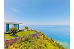 Luxury minimalist villa with swimming pool and panoramic views over the Atlantic, built in one of the most prestigious residential areas of Prazeres. Inside, the social areas are open plan, with the living room opening onto the kitchen with a central island in a matte finish. The large windows enhance the natural light and frame the sea, transforming every moment of the day into an immersive experience. The sleeping area has three suites, all with en-suite bathrooms and built-in wardrobes throughout; in two of them, the wardrobe takes the form of a walk-in closet, integrating elegantly into the architectural design. The master suite is unique for its generous size and bathtub. The bathrooms are equipped with remote-controlled opaque glass, ensuring immediate darkening of the space without compromising the design. The property also includes an office, perfect for work or study, without compromising the fluidity of the rooms. The enclosed garage for two cars and the climate-controlled wine refrigerator underline the care taken in every detail. Outside, the garden with mature olive trees creates a green haven, while the swimming pool invites peaceful gatherings. The solar panel system, supported by a high-capacity battery, provides energy autonomy without neglecting environmental responsibility. Set among other high-end homes, this house stands out for the quality of its materials, its careful placement on the land, and its discreet surroundings. Contact us to learn more about this unique property. Want to know more?