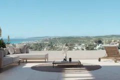 Modern Apartments and Penthouses in the New Golden Mile EsteponaThese apartments for sale in Estepona Spain are situated in the New Golden Mile. Located between Marbella and Estepona, this area is one of the most sought-after areas on Costa del Sol. With its stunning golden beaches, exclusive residential developments, and an unrivaled selection of services, this enclave offers the perfect balance between luxury, tranquility, and convenience. This booming area ensures high appreciation, making it a secure and profitable choice for investors.This exclusive gated community is perfectly situated between renowned golf courses. The sandy beach is less than 2 km away, the well-known Puerto Banus marina is 10 km away and the Marbella center is 17 km away. Additionally, the area offers a wide variety of gourmet restaurants and prestigious beach clubs.Designed with innovation and attention to detail, this residential complex offers a seamless blend of contemporary architecture, luxurious interiors, and premium amenities that enhance comfort and well-being. With state-of-the-art fitness facilities and a serene environment for work and relaxation, every aspect is crafted for an exceptional lifestyle. thoughtfully integrated with its natural surroundings, the development features expansive terraces and lush landscaped gardens, providing a perfect balance of privacy, tranquility, and a deep connection to nature.This development offers apartments with private gardens or penthouses with rooftop solariums, that offer breathtaking views of the sea, mountain, and golf valley. Inside these spacious apartments, every design detail and architectural element has been crafted to offer an exceptional living experience. Featuring advanced home technologies and beautifully landscaped gardens, each aspect reflects a commitment to quality, from sleek, contemporary facades to luxurious interiors. Each residence includes 1 or 2 private parking spaces. AGP-00956 Want to know more?