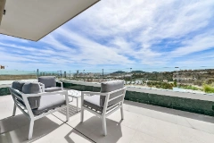 Seascape Blue is a private resort designed to provide greater privacy to homeowners, allowing them to fully enjoy the Mediterranean lifestyle. Developed for those seeking calm and tranquillity, it includes 70 penthouses with private terraces and 2 and 3 bedrooms, as well as 2 exclusive villas with private pools. The Seascape Blue Resort has an exceptional design with an avant-garde image. Its architecture and contemporary style partially centre around the stepped terraces, which provide greater light and privacy to the homes, in addition to an outdoor space to enjoy the good weather. On the ground floors, the homes are equipped with a private garden for the owners’ exclusive use. The resort’s homes have exceptional views of the area’s greenery, the Benidorm skyline and the Mediterranean Sea in the background. In this little corner of the Costa Blanca, you will experience the coast in a different way than in any other place in the Mediterranean. The infinite blue of the ocean, the mildtemperatures and the tranquility of its waters invite you to connect with the sea and enjoy it in a thousand different ways every day. You will be connected to its powerful influence even from the private terrace of your home at Seascape Blue, where you will betreated to one of the best views of the Mediterranean sea.SB423C Want to know more?
