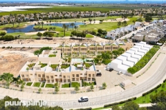 Exclusive, low-rise development on a south-facing plot inside the prestigious Roda Golf Resort, close to the golf course.•Total of 36 properties of which 16 are now on sale in phase 1.•All 16 properties have 3 bedrooms and 2 bathrooms, with over 90m2 build size, plus fantastic outside space.•The 8 ground floor homes have 3 bedrooms and 2 bathrooms, with a front terrace and garden facing the communal pool and gardens, plus an enclosed back garden with room for off-road parking (except for No.s 13 and 15 which have a private space in the parking area). Private storeroom included with each property.•The 8 penthouses have 3 bedrooms and 2 bathrooms, a balcony facing the communal pool and gardens, plus a huge roof solarium with summer kitchen. Private, off-road parking space in the parking area and a separate storeroom also included.•Beautiful communal gardens and pool area which enjoys the sun all day long.Additional, selected key features•Energy-efficient thermal insulation, plus a high level of soundproofing.•All white goods included: fridge-freezer, oven, microwave, vitroceramic hob, extractor-fan, dishwasher, washing machine and, for the penthouses, a small fridge for the outside kitchen.•Pre-installation of ducted air-conditioning throughout.•Interior and exterior lighting, minus ornamental lights.•Motorized shutters throughout.•Shower screens included.•TV and telephone sockets in the living room and bedrooms.•Interior doors, carpentry and fitted wardrobes in white, double-glazing with optimal solar protection.•Outside kitchen for the penthouses with work surface, stainless steel sink, plus aluminum storage area containing the mini fridge.•Hot water system via an electric, adjustable boiler and 1.5kw photovoltaic solar panels.•Pre-installation for an electric car charger on the development.The resort and the course•Private development with 24-hour security.•Taxi rank on-site.•A magnificent clubhouse and bar/restaurant offering snacks and a la carte dining, plus a large outside terrace with stunning views of the course.•Pretty communal gardens, plus children’s play areas.•Gymnasium with lake views.•A beautifully maintained 18-hole, par 72, Dave Thomas designed golf course featuring strategically placed bunkers and 3 large lakes.•Well-stocked pro-shop, driving range, practice putting green.Location•Roda village and its pretty square which offers a couple of bars/restaurants, a supermarket and a sports court is a few minutes’ walk away (500m) from the resort.•Just a 15-minute walk (1.5km) from the resort to the bustling seaside town of Los Alcazares, with its shops, bars restaurants, supermarkets, chemists, and health centre.•The nearest beach with its popular beach bar is just 3km away, so a 5-minute drive or a 10-minute cycle ride from the resort.•Superb communication links, with the AP7 motorway close by.•Murcia International Airport is less than a half hour’s drive (38km) and Alicante airport can be reached in under an hour (90km). Want to know more?