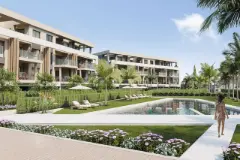 NEW BUILD APARTMENTS IN PRIVATE GATED RESORT IN PROVINCE OF MURCIA New Build residential complex of 6 blocks, a total of 42 apartments. Beautiful apartments have 3 and 2 bedrooms and 2 bathrooms with views of the large lake and green areas of this large luxury resort. Ground floor apartments with private garden, top floor apartments with private solarium. Complex has a communal pool and all the apartments have a parking pace and a storage room. Located in a private gated resort, with a main access entrance and 24 hours security. The resort is designed around an impressive 126.000 m2 green area. It comprises walking and cycling paths, sport facilities, paddle and tennis courts, a mini-golf course, gardens, dog parks, leisure areas, clubhouse…. Also in the central area is the jewel of the resort, a crystal-clear artificial lake of almost 17.000m2 of water surface, surrounded by white sandy beaches and palm trees, bringing a piece of the Caribbean to the Murcia Region. There are 2 islands in the lake, one of them has its own bar, there are also “beach Chiringuitos” spread around the lake. The resort is strategically located less than 4 km from the beach and the town of Los Alcázares, where you can practice various water sports, surrounded by several golf courses and the city of Cartagena less than 15 minutes by car and 22 km from Murcia airport, therefore having a wide cultural, gastronomic and sports offer within reach. Want to know more?