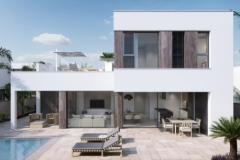 Villa provided with 4 Bedrooms and 3 Bathrooms, private swimming pool and underground parking space. Modern detached villas for sale on the beach of Torre de la Horadada (Pilar de la Horadada) An exclusive residence of 12 modern, detached villas 100m from the Higuericas beach in Torre de la Horadada. The Swiss architect Massimo Di Claudo designed a longitudinal separation between the buildings with a common access to the garages of four of the villas in between. Each villa has independent access from the street surrounding the plot as there are no adjacent buildings. Large, green areas and little traffic, makes it ideal for the youngest of the family. Most of the villas have a plot of 314 square meters, with a built area of 200 square meters. However, there are also several larger lots available with an area of up to 600 square meters. With 2, 3, 4 or 5 bedrooms, one with a bathroom and dressing ensuite. The kitchen (incl. appliances) with open concept, fully equipped with top quality materials, to be chosen by the future owner. Large windows offering beautiful light throughout the day and direct access to the pool and private gardens (fully finished). In all villas, a microclimate is achieved in every living space, thanks to the design and layout of the interior spaces. This, together with the thermal and acoustic insulation, create a harmonious and comfortable environment. Air conditioning (hot/cold) with ducts included. Attention to detail during the finishing, materials of the highest quality, a personalized design and luxurious finishing (without sacrificing comfort), make the villas inviting to live all year round. To increase comfort, several villas have a large garage with laundry room and storage room. Want to know more?