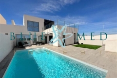 ONLY 1 key readyBrand new turnkey luxury villa with private pool. This high quality contemporary construction on three levels comprising; Ground Floor 90m2, First Floor 28m2 + Solarium 55m2 and Basement (garage) 160m2 (opportunity to create additional housing). The villa has 3 double bedrooms, 3 luxury bathrooms, open plan living room with modern fitted kitchen, breakfast bar/island. Large 'hidden and sliding' patio doors open to reveal the large private pool with many surrounding terraces. Airzone A-C is installed in this turnkey villa which can be controlled via an app. Want to know more?