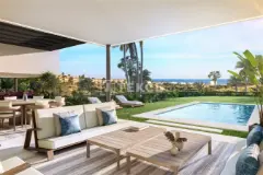 New Release! A selection of luxury villas featuring sea views at pre-launch prices. The villas offer ample living areas, with over 630 sqm interior space and 250 sqm terraces. The villas are available with four or five bedrooms and there is a great selection of options to customise your new home. The lower level of the villas comprises an open plan living and dining area, a fully fitted kitchen, one bedroom, one bathroom and a guest WC. Three of four further bedrooms with bathrooms, terraces are located on the upper floor. There is also a roof top terrace with some fantastic panoramic views over the surrounding areas, Marbella Bay and the sea. Other outdoor areas include covered terraces and a garden with private pool on the living room level. The villas are part of a popular residential complex with an exclusive Owners Club, including a SPA with indoor pool, gym and restaurant. Completion forecast for 3rd quarter 2025Prices from € 4,500,000Photos, views and layout may vary and are for illustrative purposes only Want to know more?