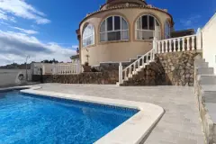 This elegant detached villa is situated in the desirable La Marquesa Golf area of Ciudad Quesada, priced at €299,500. With 2 bedrooms and 1 bathroom, the property stands on a 400 m² plot and offers 146 m² built area. Its south-facing orientation grants superb natural light, and its elevated position provides expansive views across the surrounding landscape. The property is conveniently located just 1 km from amenities, 1 km from golf, and only 7 km from the beach. Inside, the villa features a bright, open lounge/diner that leads out to wrap-around terraces overlooking the private pool and garden. A separate, fully fitted kitchen, utility room, and storage spaces enhance usability. The two double bedrooms are spacious, fitted with wardrobes, and share a well-appointed family bathroom plus a separate WC. The interiors combine comfort with functional design. Outdoors, you’ll find a private swimming pool surrounded by terraced patios, multiple sun and shady seating areas, and off-street parking. The house includes air conditioning (hot and cold), a pellet burner in the lounge for cooler evenings, and a storage room. The location at the end of a quiet cul-de-sac ensures privacy and reduced traffic. 2 double bedrooms1 full bathroom + separate WC146 m² built area on 400 m² plotPrivate swimming pool with wrap terracesPanoramic views over terrain & poolAir conditioning Off-street parking (garage option)Storage/utilities roomQuiet cul-de-sac locationProximity to amenities, golf & beach Want to know more?
