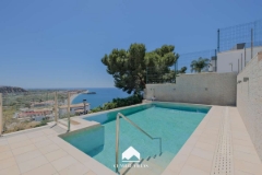 NEW BUILD LUXURY VILLA IN BENISSA New Build Luxury villa in Benissa with VIEWS TO THE SEA and the Peñón de Ifach. This villa, with exposed panelled concrete finishes, has 4 floors that are connected with an elevator and an internal staircase. The ground floor has a large open living-dining-kitchen area and guest toilet. The kitchen is fully equipped and has a cooking island. Sliding doors at ceiling height give direct access to a spacious terrace and pool. The upper floor contains two bedrooms with en-suite bathrooms and a terrace. The property has 2 basements. The basement number 1 has another two bedrooms, each with its own bathroom and a laundry room. The basement number 2 houses the gym, the cellar and a garage with capacity for 4 cars. The house has air conditioning (with ducts) and central heating with heat pump. It has an automatic entrance door with a separate pedestrian entrance and an intercom. On the same level as the main house is the swimming pool. Includes exterior carpentry with automatic shutters and mosquito nets in bedrooms, fitted wardrobes with modules and basic alarm installation. Benissa is located towards the northern end of the Costa Blanca, just off the A-7 Motorway; the trip to and from Alicante airport takes just over one hour. The town is small, but enchanting with its medieval architecture and charming plazas. Although only 5 kilometres distance from the sea – as the crow flies, the nearest beaches by road are approximately 11 kilometres away and the seaside towns of Calpe (to the south) and Moraira (to the north east) are approximately 12 kilometres distance. The views of the Mediterranean, the weather, wild nature, the quality of the light, the towns architecture, Benissa will seduce you. Alicante airport located 1 hour away. Want to know more?