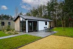 Comfort van binnen en buiten, daar staat deze 4-persoons vakantiewoning voor. De mooie locatie met uitzicht over de tuin bindt de ogen elke dag weer op prettige wijze, daarnaast is de woning zelf ook onderscheidend. Zowel van binnen als buiten zijn onderhoudsvriendelijke materialen gebruikt, verder is ze volledig geïsoleerd en voorzien van dubbele beglazing. De grote ramen verschaffen u elke dag weer een mooie aanblik over het ‘groen’ wat het gevoel van rust en ruimte, waar een vakantie veelal voor staat, versterkt. Datzelfde doet ook het terras aan de voorzijde van de vakantiewoning.Het gevoel van rust en ruimte is ook van toepassing wanneer u de woning binnengaat. U komt direct in de grote living met open keuken die bestaat uit een keukenblok en alle benodigde keukenaccessoires. Dit laatste houdt in dat u beschikt over een kookplaat, afzuigkap, koel-vriescombinatie, vaatwasser, magnetron, oven en een kraan met daaronder een rvs spoelbak.Vanuit de living heeft u direct toegang tot de gang waar de twee slaapkamers en de badkamer zijn gelegen. Voor beide geldt dat, net als bij de living en de keuken, ze compleet met mooie materialen worden ingericht. Want to know more?