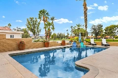 Custom golf course home on one of the best streets in Bermuda Dunes!! This unique property has TWO PRIMARY SUITES plus a third bedroom!! Each suite has a full bathroom and direct access to an inviting inground spa located in an elegant, very private courtyard setting. The other bedroom is currently used as an office with built-ins. Enter through custom lead glass door into a open great room concept with a cozy fireplace and spacious sit down wet bar - all with plenty of glass to let in tons of light. The gourmet kitchen has been thoughtfully remodeled and has a convenient morning room for casual dining - all with great views of the golf course and mountains. There is plenty of room for entertaining with the sparkling pool on one side of the home and an expansive covered patio on the north side of the home, as well as the separate private garden area with the in ground spa. The great room boasts a cozy fireplace for those cooler evenings and a spacious sit down bar with step down area to storage and a refrigerator. There is also a fireplace in one of the primary suites!! Two car attached garage with a golf cart garage and plenty of storage completes the package. IID for lower electric. Low HOA of only $214 a month includes cable TV with two boxes with Showtime, Cinemax & HBO plus internet with Spectrum PLUS 24-hour guard gated security. 30 day rental minimum. Want to know more?
