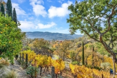 120 Acre Napa Valley gated estate minutes from downtown Calistoga with gorgeous views over the valley, the hills beyond, and 500 premium Cabernet vines at your doorstep. Italian cypress line the drive leading to the gated courtyard with Provencal fountain. The glass front door opens to golden light & soaring ceilings. The entire home shimmers with warmth & color. The kitchen, dining, and living great room has vaulted ceiling, huge open beams, art glass lights, glowing pine floors, fireplace and a wall of windows that frame the view and sparkling pool. The home is filled with accents such as Venetian plaster faux painting, hand painted tilework, antique iron hardware, and artistic fixtures. The kitchen offers a huge island, & all the amenities a chef could wish for. The primary suite is romantic with sunset views, rose framed balconette, and French doors to a private patio with fountain. Entertaining is a delight on the back patio with swimming pool, fireplace, outdoor kitchen & built-in sitting area by the spa. Downstairs is a guest suite, the inviting family room, full bar, a covered outdoor patio and gym. Gather guests for a picnic beneath the shade sails by the creek and listen to the frogs around the pond framed by cottonwood trees and the fruit orchard. Want to know more?