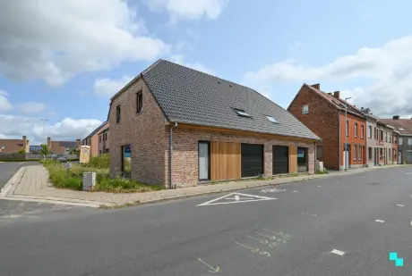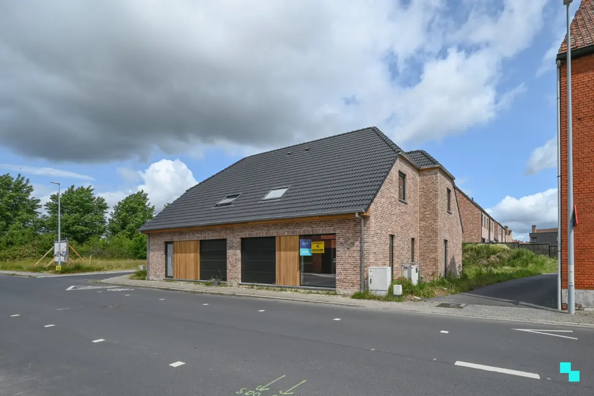 Located in the charming town of Ledegem, the new residential project at Sint-Eloois-Winkelstraat 47-49 offers two high-quality semi-detached homes. These newly constructed houses provide a spacious living area ranging from 156 m² to 170 m² and are set on plots of 289 m² to 302 m². Each home is thoughtfully designed with four bedrooms, an integral garage, and features modern installations. The layout includes an entrance hall with a separate guest toilet, a living area with an open-plan kitchen, an adjoining storage room/washroom, and a garage with added storage space under the stairs. On the first floor, residents will find a landing leading to four generously sized bedrooms and a separate toilet. The bathroom is equipped with a bathtub, a walk-in shower, and a double sink unit. An attic, accessible via a trapdoor in the hallway, provides extra storage potential. Notably, while the exterior is left for the buyer to complete, the interiors are fully finished. The homes are designed with energy efficiency in mind, achieving an E30 energy rating according to preliminary EPB studies, featuring underfloor heating powered by natural gas, super-insulating glass PVC joinery, solar panels (5 x 430 Wp), a C+ ventilation system, and a rainwater tank with a 7,500L capacity. The project offers prospective homeowners the opportunity to personalize the finishing and techniques according to their preferences. Priced between €324,000 and €333,000, these homes combine modern living with the tranquility of Ledegem's setting. Interested buyers can schedule an appointment for a site visit through Laurence (BIV 514.501), who handles viewings for these properties.