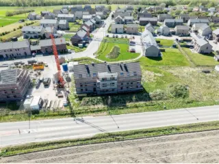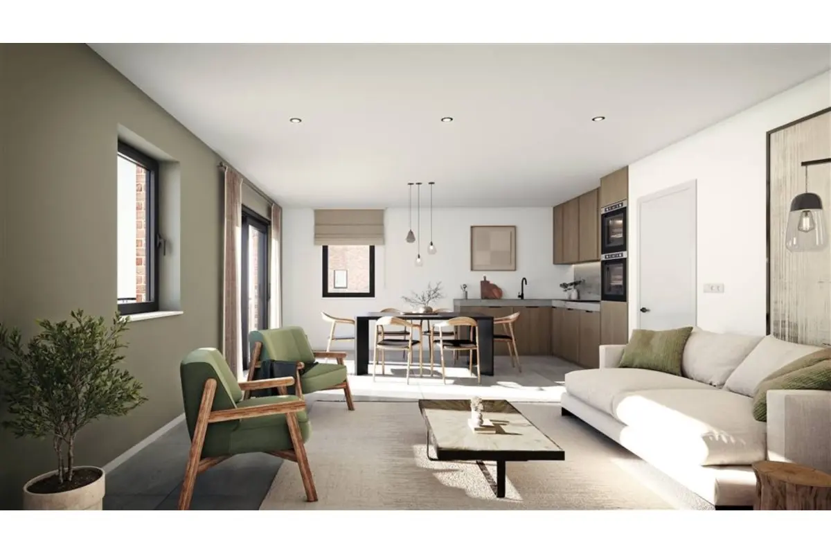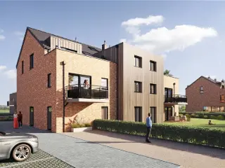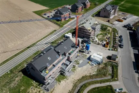 Located in the picturesque setting of Hélécine, the Hélécine - Chaussée de Hannut project offers a unique opportunity for high-quality living. Situated on Rue Eugène Branckotte, this new development by Thomas & Piron Home comprises two buildings featuring eight units each, plus two commercial spaces, and a total of ten elegant apartments. The project is strategically positioned near major cities like Hannut, Jodoigne, Tirlemont, and Saint-Trond, providing easy access to a variety of shops, schools, sports clubs, and essential amenities. Its excellent location between Brussels and Liège, along the E40 motorway, ensures seamless connectivity for residents. Each apartment within this development is designed to maximize comfort and energy efficiency, featuring an A-grade energy performance certificate (PEB A). Prospective homeowners can choose from units offering one to three bedrooms, all of which come with spacious living areas, well-appointed kitchens, and private outdoor spaces such as terraces, gardens, or balconies. Additional features include a separate WC, a laundry room, an individual storage cellar, and access to bicycle and trash rooms. There is also the possibility of acquiring a private parking space for added convenience. The project offers apartments with livable surfaces ranging from 68 to 108 m², allowing for a diverse range of living spaces that cater to different needs. Pricing starts at €206,000 for one-bedroom units and goes up to €308,000 for the exclusive three-bedroom unit. Each apartment is equipped with modern comforts such as efficient ventilation systems and individual gas boilers. Combining quality craftsmanship with sustainable design, these homes present an ideal investment for those seeking a harmonious blend of countryside tranquility and urban accessibility.