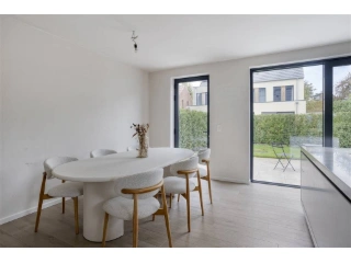 Located in the vibrant town of Minderhout, part of Hoogstraten, the Residentie Hof Van Hoet offers a selection of modern, energy-neutral homes in a charming and accessible neighborhood. The project comprises six high-quality new builds, with four already completed and fully finished using premium materials, ensuring durability and comfort. The available units boast spacious layouts, ranging from approximately 170 to 189 square meters, with 4 or 5 bedrooms to accommodate families of various sizes. Each residence is designed with sustainability in mind, featuring advanced insulation, a geothermal ground-water heat pump, underfloor heating, solar panels, and rainwater recovery systems. These eco-friendly features help achieve an energy-neutral status (E-peil under 0). The outdoor spaces are thoughtfully landscaped, including fully developed gardens and terraces, some of which are equipped with automated lawn mowing systems and connections for electric vehicle charging stations. Practical amenities are conveniently located nearby, including shops, schools, and restaurants, making daily life easier for residents. An underground parking space is included with each property, accessible via Witherenweg, and comes with an electric charging point. The project benefits from favorable tax conditions, with options for reduced VAT rates under specific circumstances, and is managed by BCR Development. Interested buyers are encouraged to contact the sales team for more information and to arrange viewings.