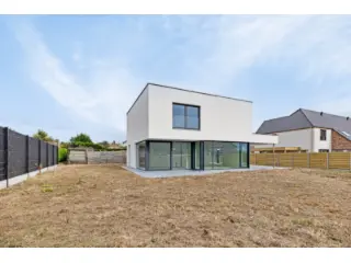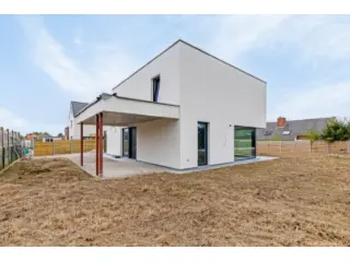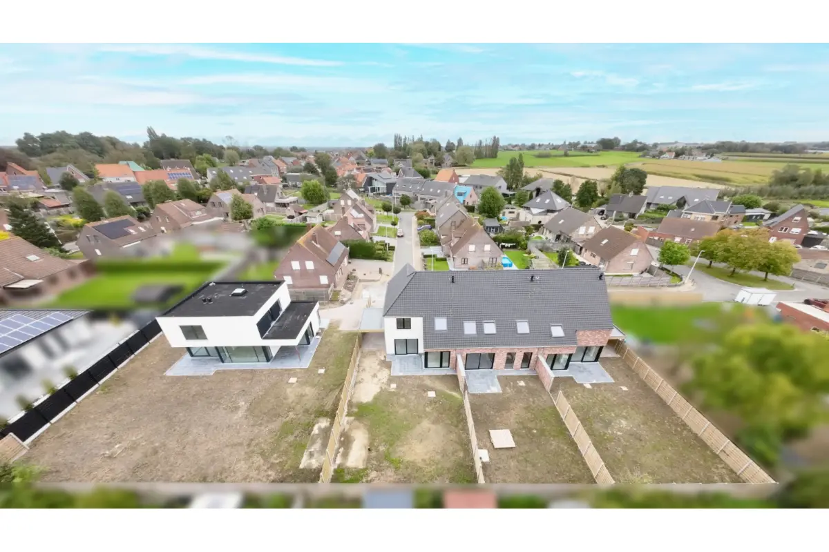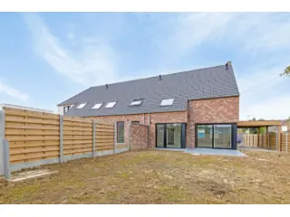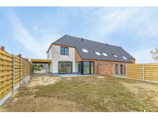 Welcome to Kantwerk, an exclusive new development located at Kantwerkersstraat 3 in the serene town of Klerken, 8650. This thoughtfully designed project features three charming semi-detached homes built in a rustic style, alongside a modern standalone villa. Developed by the experienced Bouwonderneming Canneyt BV, the project emphasizes energy efficiency, comfort, and quality finishings. Each dwelling incorporates practical layouts with abundant natural light, underfloor heating, and advanced energy solutions like air-to-water heat pumps and solar panels, ensuring a pleasant living environment both inside and outside. The semi-detached homes boast spacious living areas, open-plan kitchens, and ample storage. On the ground floor, you will find an inviting entrance hall with a guest toilet and a generous living space connected to a well-equipped kitchen pantry. The first floor includes three large bedrooms, a bathroom with a walk-in shower and double sink, and a separate toilet. There is also an option for staircase access to the second floor, offering potential for an additional bedroom or hobby room. These homes come with carports, landscaped driveways, terraces, and enclosed gardens, while the detached villa includes an integrated garage. Delight in high-quality aluminum window profiles with screens and meticulous attention to detail throughout. The villa's ground floor includes a large entrance hall with a guest toilet and an expansive living area with an open kitchen and adjoining office space. Upstairs, three bedrooms, a bathroom with bath and shower, and an additional toilet provide comfort for families. The villa's garden is fully enclosed, with a carport and gravel-matted driveway completing the exterior. With pricing ranging from €367,000 to €597,500 and unit sizes between 153 m² and 201 m², this project offers diverse living options tailored to meet various needs. Delivery is scheduled for Spring 2025, making this a perfect opportunity to secure your dream home today.
