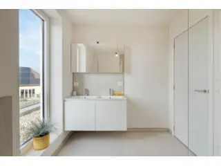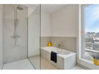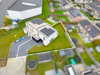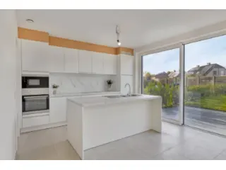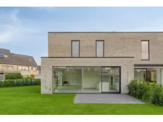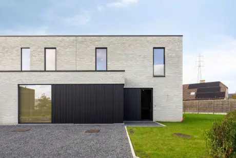 This development in Roeselare offers two modern, semi-detached new-build homes located at Gaston Vallaeysstraat 16. Each property provides a spacious livable area of approximately 159 square meters, designed with a contemporary aesthetic that emphasizes clean lines and functional layouts. The houses are situated on a quiet, west-facing plot of around 408 square meters, ensuring ample outdoor space with a well-maintained front garden, private driveway, and a rear garden ideal for afternoon and evening sun exposure. The homes are built to meet the criteria of a BEN (Nearly Energy Neutral) residence, incorporating cutting-edge energy-efficient technologies and sustainable materials. Key features include underfloor heating powered by a heat pump, a mechanical ventilation system with heat recovery (Type D), and 11 solar panels generating a total capacity of 4,620 Wp. Additionally, each house is equipped with a rainwater collection system of 7,500 liters, a fully certified electrical installation, and photovoltaic systems, resulting in an impressive energy score of just 7 kWh/(m².year) and an E-peil of E4. Inside, the properties feature three bedrooms, a spacious bathroom with a bathtub and shower, a large living room with expansive windows for natural light, an open-plan kitchen, and practical storage including a laundry and technical room. The garages are integrated into the design for added convenience. Located close to Roeselare and offering easy access to major roads and facilities such as AZ Delta Rumbeke, these homes provide a comfortable and energy-efficient living environment in a peaceful setting. The price starts at €385,000, excluding additional costs.