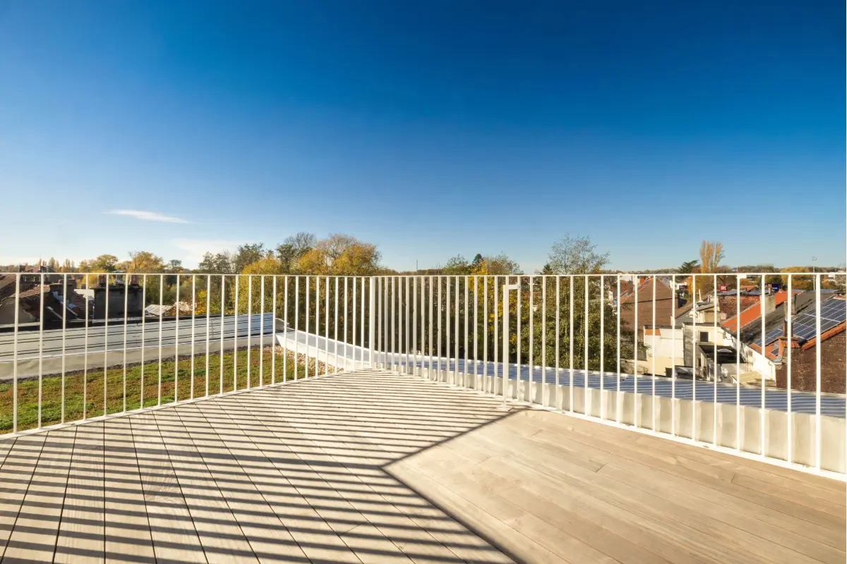 The project is an example of investment in Future Proof building and environmentally responsible living, with the added benefit of considerable savings on energy and water costs. L'Etoile Verte is equipped with solar panels that cover +/- 40% of energy needs. Excess energy is sold, reducing communal costs. All flats have triple drainage and a rainwater recovery system for the toilets (+/- 20% of water consumption). Each flat has its own cellar and parkingspot. Show all Show less